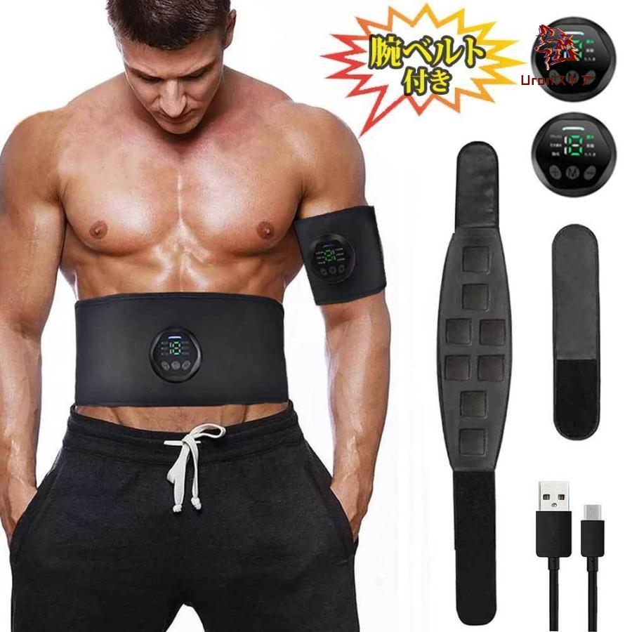 EMS 腹筋ベルト 最新式 強力モデル 腹筋パッド 筋トレ 液晶表示 消耗ジェルシート不要 延長ベルト追加 充電式 男女兼用 PSE認証済み