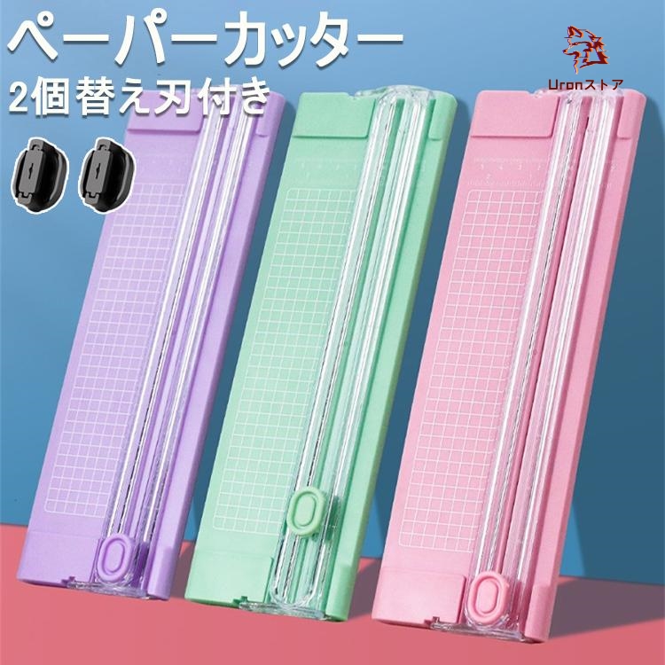 ペーパーカッター 2個替え刃付き ペーパー裁断機 ペーパーカッター 小型 軽量 使いやすい A4サイズ対応 軽量 ミニ裁断機 おしゃれ スライドカッター カード