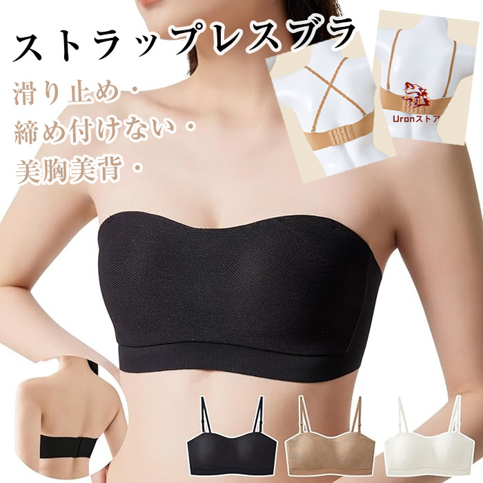 ストラップレスブラ 肩紐なし ずれない ズレ落ちない 2way 盛れる ストレッチ抜群 美胸美背 滑り止め ノンワイヤーブラ シームレスブラ 結婚式 オフショル イン