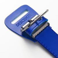 バックルに「DESCENTE」ロゴ、ベルト端にもスピリットマークが配置されています。