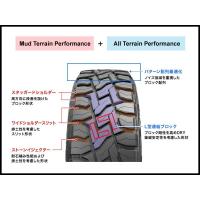 トラクション性能に優れた「マッドテレインタイプ」とオンロードとオフロードとのバランスをキープする 「オールテレインタイプ」。2つの特性を両立するパターンデザインを採用。