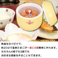 ご家庭で熱湯を注ぐだけで、一度に最大5つの温泉たまごを簡単に作ることができます。温泉たまごのレシピが本体に印刷されているので便利です。