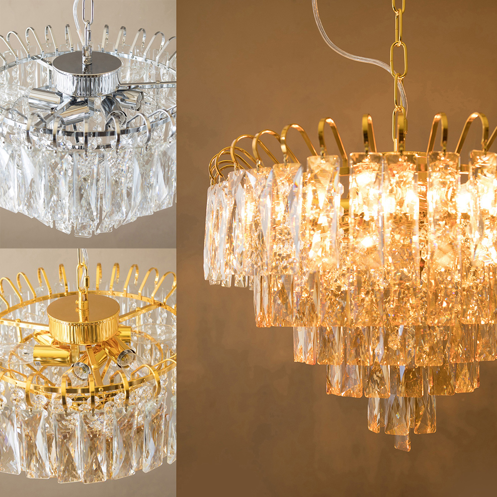 ひとつひとつが丁寧にカットされたクリスタルガラスが、空間に無限の輝きを放つシャンデリアです。