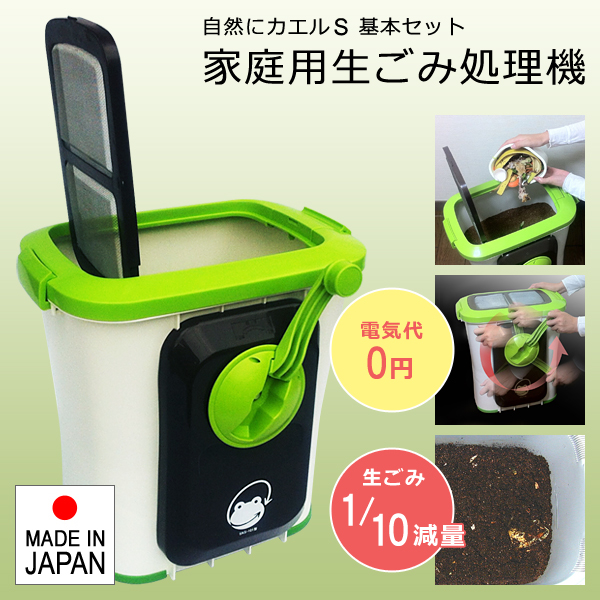生ごみ処理機 家庭用 肥料 堆肥 バイオ式 室内 屋内 キッチン 台所 生ゴミ処理機 処理器 ごみ減量 エコ 環境保全 ハンドル操作 大容量 2人家族 3人家族 4人家族 サイズ 安心 安全 微生物 分解 電気不要 防臭 助成金制度 再利用 リサイクル 経済的 自然にカエルS 基本セット SKS-101型 日本製 国産 4546974000135
