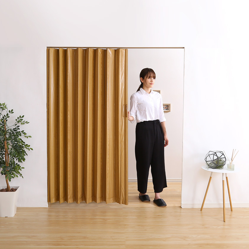 ・木目調がおしゃれなアコーディオンドア