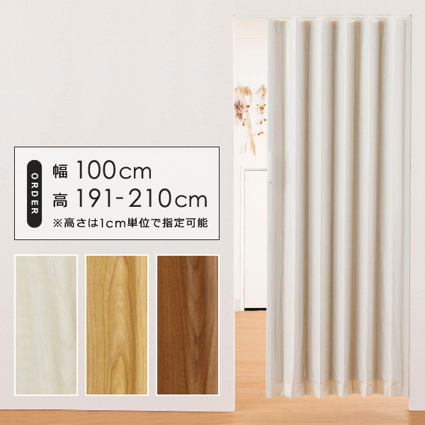 アコーディオンカーテン 間仕切り パネルドア おしゃれ 取り付け 簡単 オーダー DIY アコーディオンドア スライド 木目 レール 部屋 目隠し 取っ手付き 幅100cm