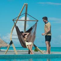 生地はもちろん、ロープやウッドバーとのカラーバランスまで徹底的に配慮されたハンモック・チェアハンモックは屋内外設置する場所を問わず、高い評価を得ています。