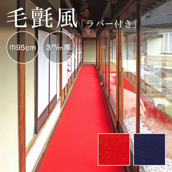 フェルト 床材 すべり止め 滑り止め ずれ防止 ポリエステル 催事 展示会場 雛祭り 毛氈の代わり 毛せん代用 赤 レッドカーペット 紺 ラバー付き あかねフエルト