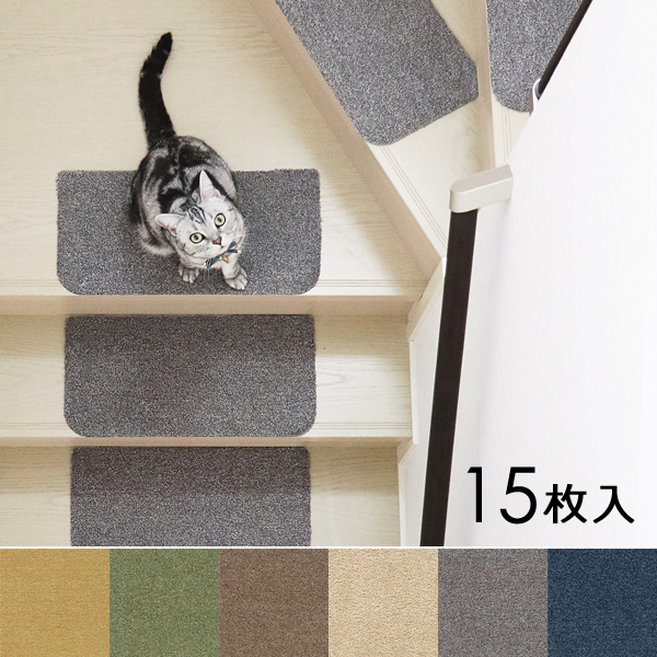 階段マット 階段 滑り止め おしゃれ すべり止め ずれない 厚手 厚み 7mm 極厚 高密度 カットパイル 室内 犬 イヌ 猫 ネコ ペット対応 床暖房対応 洗える 洗濯機で 丸洗い ウォッシャブル 吸着 置くだけ マンション 賃貸 イエロー 黄色 グリーン 緑 ブラウン 茶色 ベージュ グレー ネイビー 青 紺