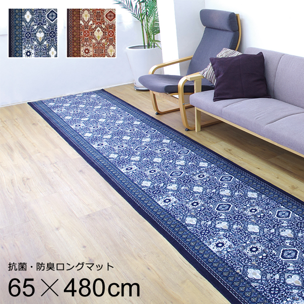 廊下用ロングカーペット 幅65cm 長さ480cm 廊下 カーペット 廊下敷き おしゃれ 北欧 アラベスク 柄 幾何学的文様 模様 滑り止め 日本製 マット 抗菌 防臭 速乾