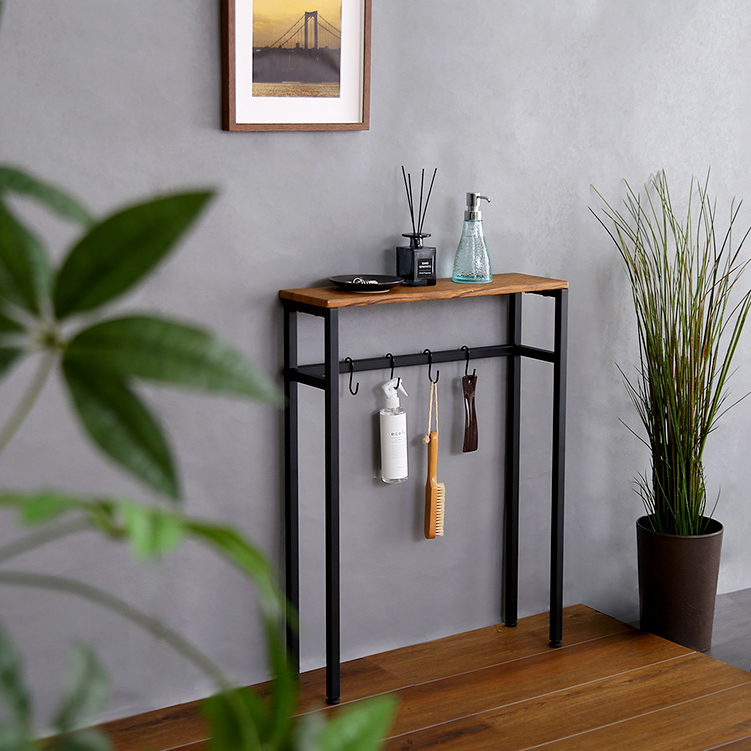 コンソールテーブル 玄関 スリム おしゃれ リビング 棚 テーブル 物置き 台 小物置き エントランス 北欧 デザイン スチール 脚 ビンテージ風 木目柄 キッチン