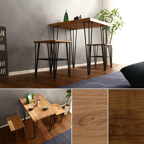 ダイニングセット 3点セット ダイニングテーブル ダイニングチェア テーブル 椅子 おしゃれ ビンテージ風 木目 スチール脚 西海岸風 ナチュラル カフェ風