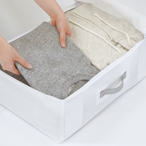 収納袋 衣類 服 取っ手付き 不織布 クローゼット シンプル 白 ホワイト
