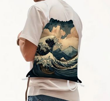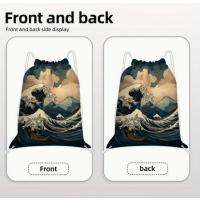 日本浮世絵ドローストリングバックパック 軽量バッグ ナップサック 旅行 ジム 学校用