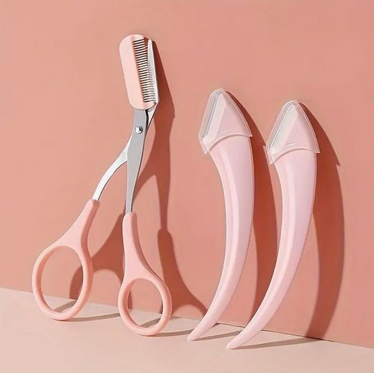 1pc ステンレス製 眉毛トリミングハサミ くし付き+2カミソリ - 眉毛のためのグルーミングツール