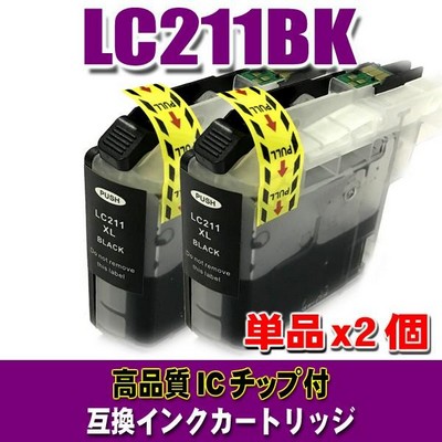 互換 LC211 ブラザー プリンターインク LC211BK ブラック単品x2 染料 (同梱A)