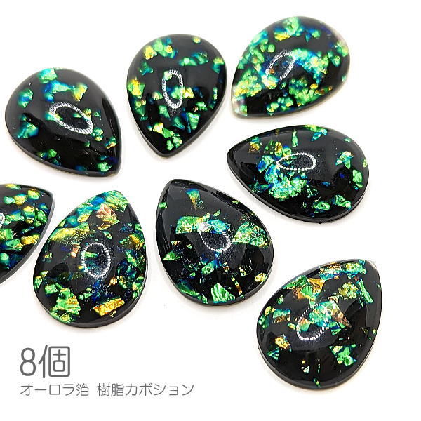 デコパーツ しずく型 18mm オーロラ箔 封入 樹脂製 カボション 雫 和風 海 マリン ぷっくり 8個 ブラック