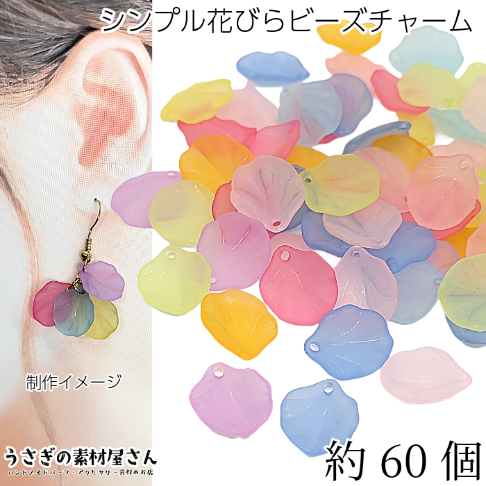 フラワー ビーズ チャーム 花びら 17mm 約60個 ランダム ミックスカラー 艶消し フラワーチャーム うさぎの素材屋さん ハンドメイドパーツ 花のパーツ ペタル