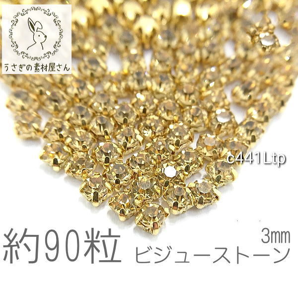 ラインストーン 3mm 縫い付け ガラスストーン ビジュー 石座 約90粒/ライトトパーズ系