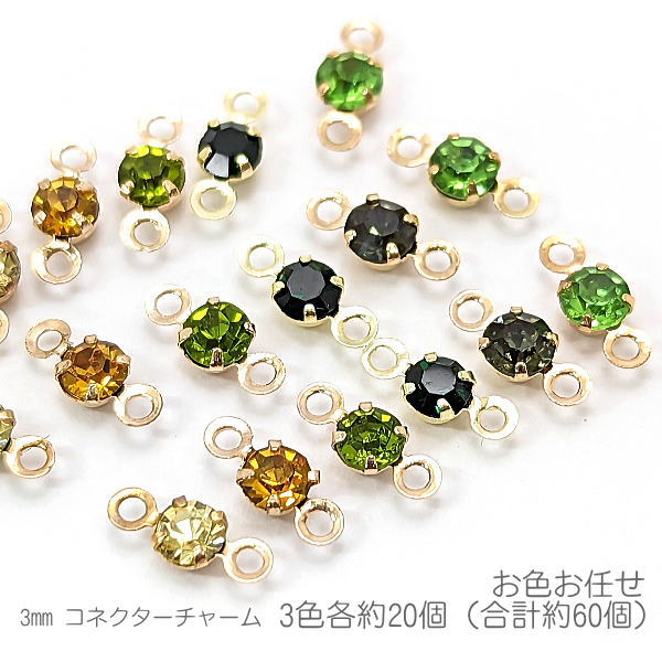 コネクターチャーム ミックス 3mm 接続パーツ 小さい 特価 お色お任せ 3色各約20個(合計約60個)/Bカラー