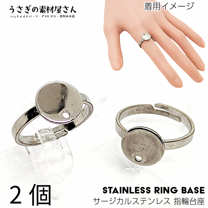 指輪 サージカルステンレス 10mm平皿 台座 アジャスターリング 2個 ステンレス鋼色 デコ土台 シンプル アレンジ 指輪 台座指輪 手作りアクセサリー パーツ
