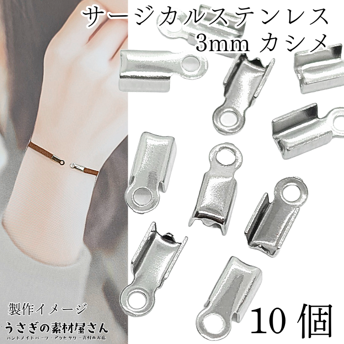 カシメ 紐留め サージカルステンレス 内径約3mm 10個 ステンレス鋼色 折りたたみカシメ 留め具 基礎金具 アクセサリーパーツ うさぎの素材屋さん