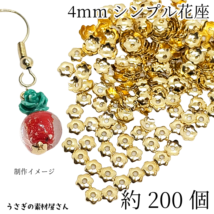 ビーズキャップ フラワーデザイン 4mm 約200個 シンプル 小さめ 花座 ミニサイズ 6花びら 基礎金具 アクセサリーパーツ うさぎの素材屋さん ハンドメイド パーツ