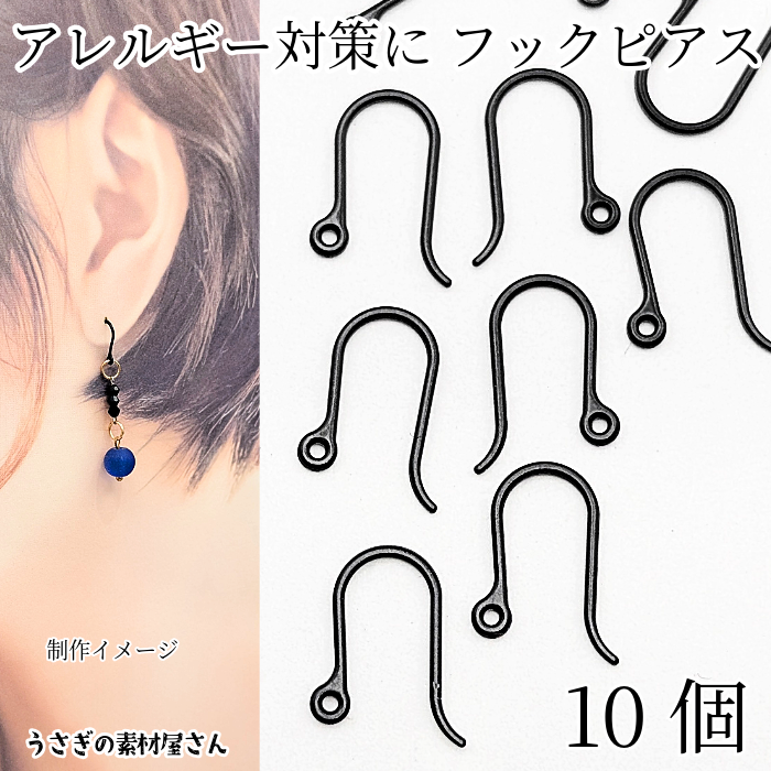 ピアスパーツ フックピアス 13mm×9mm 5ペア(10本) ブラック 黒色 プラスチック製 シンプル フィッシュフック ハンドメイドパーツ アクセサリーパーツ