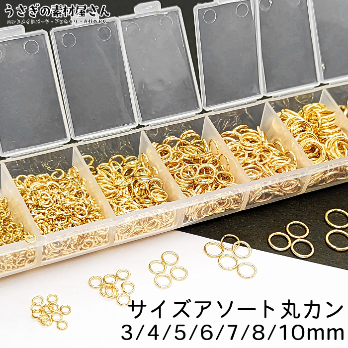 丸カン セット 3mm 4mm 5mm 6mm 7mm 8mm 10mm 7サイズセット ゴールド色 アソート ケース入り マルカン 基礎金具 接続金具 特価