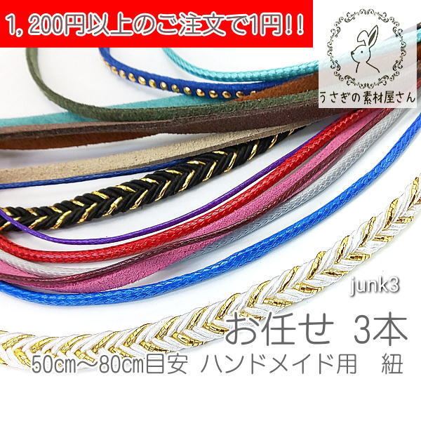 1,200円以上のご注文で1円!!* 50cm?80cm ハンドメイド用 紐 お任せ3本☆1回のご注文で1セットまで