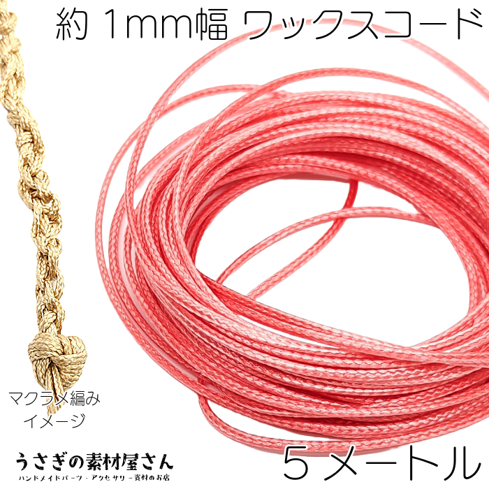 マクラメ 糸 ワックスコード 幅約1mm 約5メートル フラミンゴピンク 濃い目 ピンク系 韓国製 マクラメ タペストリー ロープに 紐 うさぎの素材屋さん