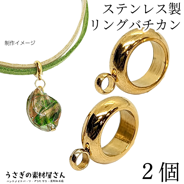 バチカン カン付き スペーサー ロンデル リングタイプ 内径約5.5mm 304サージカルステンレス ゴールド色 2個 繋ぎパーツ 金属アレルギー対策 基礎金具