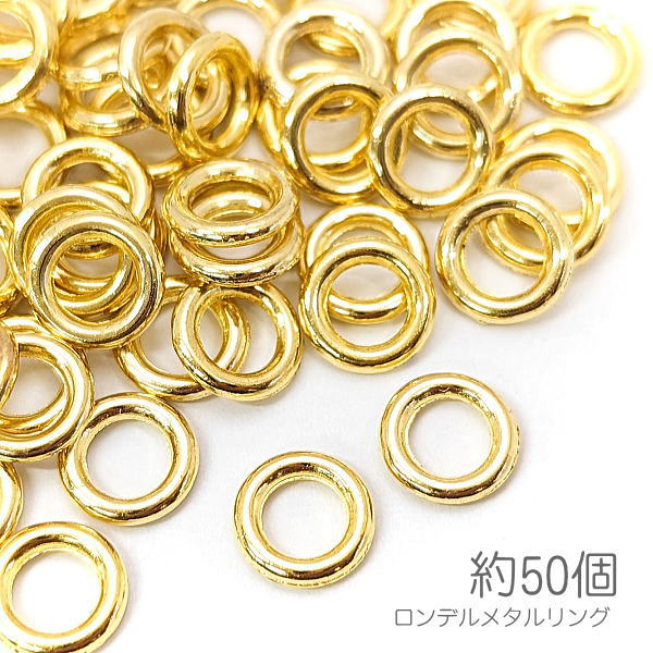 ロンデル 8mm 丸 ビーズ メタルパーツ 小さい サークル リング 約50個