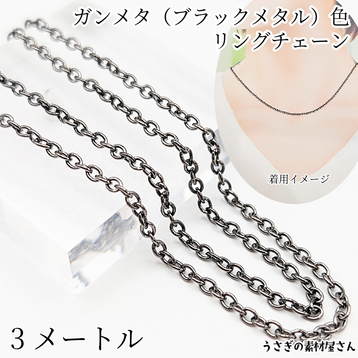 チェーン 切り売り 3メートル 3mm幅 ガンメタ色 ブラックメタル アズキチェーン リングチェーン アクセサリーパーツ うさぎの素材屋さん ハンドメイド パーツ