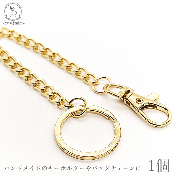 キーホルダー キーチェーン 金具 丸リング 全長約21cm 1個 ゴールド色 バッグチェーン 開閉チェック済み キーリング アクセサリー パーツ うさぎの素材屋さん