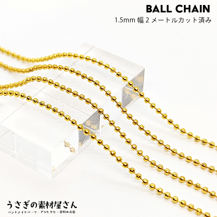 ボールチェーン アイアン製 1.5mm幅 カット済み ゴールド色 約2メートル ネックチェーン ハンドメイドパーツ うさぎの素材屋さん 切り売りチェーン ブレスレット
