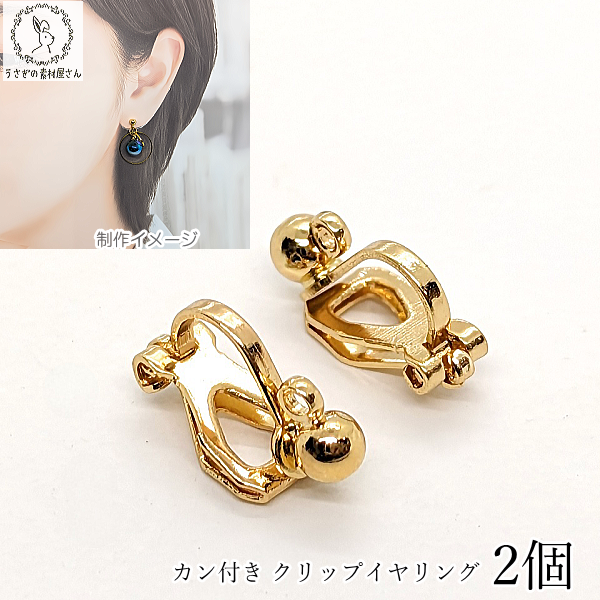 イヤリング クリップ式 三角ばね アクセサリーパーツ 2個 ゴールド色 銅製 カン付き 玉タイプ イヤリング金具 ハンドメイドパーツ アクセサリーパーツ