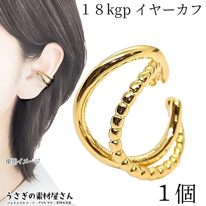 イヤーカフ 18kgp 鍍金 20mm 1個 ダブル デザインイヤカフ ノンホールピアス イヤークリップ 変色しにくい アクセサリーパーツ うさぎの素材屋さん