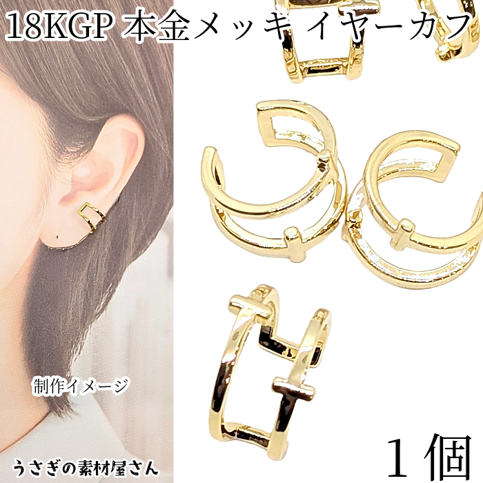 イヤーカフ 18KGP本金鍍金 1個 ダブル デザインイヤカフ ノンホールピアス イヤークリップ 変色しにくい アクセサリーパーツ うさぎの素材屋さん 高見え