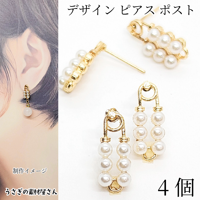 ピアス パーツ フェイクパールピアス 約10mm 4本 2ペア カン付き ピアスポスト アクセサリーパーツ うさぎの素材屋さん ハンドメイドパーツ 上品 デザイン