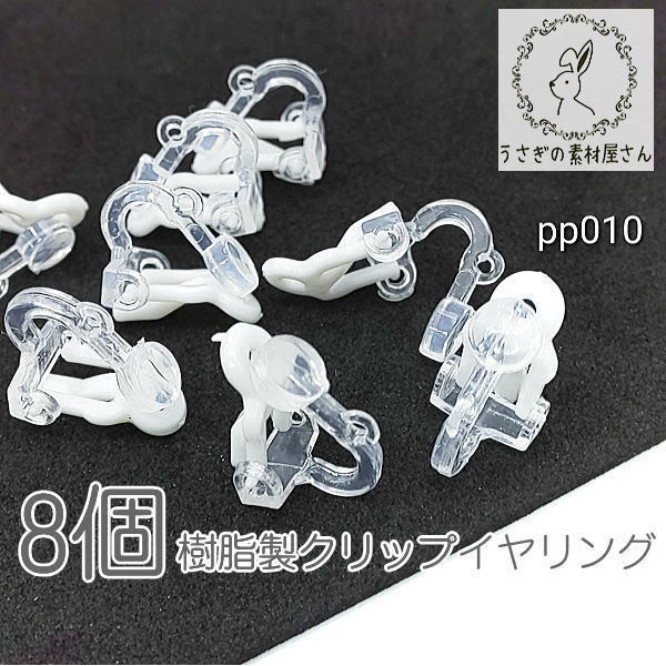 イヤリング パーツ 金属アレルギー 樹脂製 バネ 特価 平皿 カン付き ハンドメイド用 貼り付け土台 ノンホール 8個