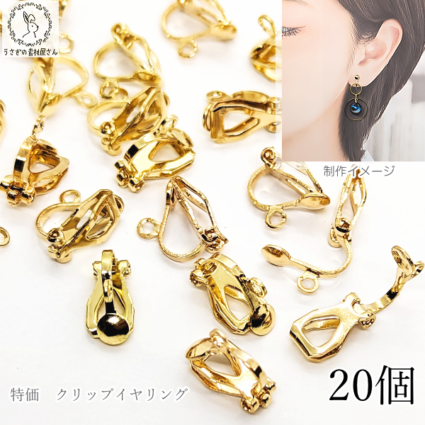 イヤリング クリップ式 三角ばね アクセサリーパーツ 20個 特価 カン付き イヤリング金具 ハンドメイドパーツ うさぎの素材屋さん アクセサリーパーツ 基礎金具