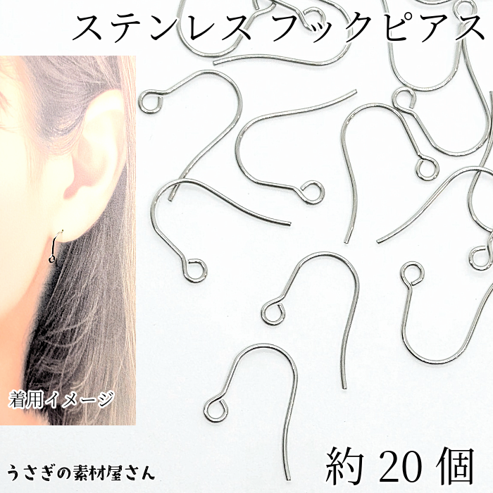 フックピアス ピアスパーツ ステンレス製 18mm 約20個 ステンレス鋼色 フィッシュフックピアス ステンレス製ピアス うさぎの素材屋さん ハンドメイドパーツ