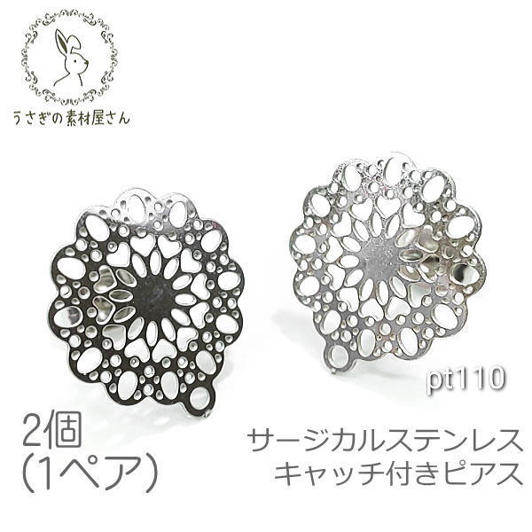 ピアス サージカルステンレス カン付き 14mm 透かしメタル キャッチ付き ピアス 金具 特価 2個