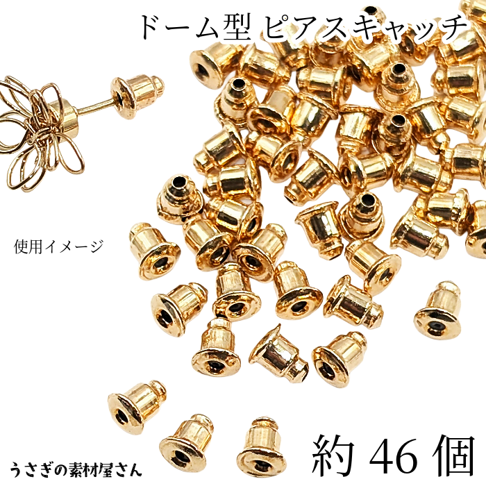 ピアスキャッチ ドーム型 ピアス留め具 約5mm幅 約46個 ゴールド色 特価 基礎金具 ピアスバックキャッチ ハンドメイドパーツ アクセサリーパーツ