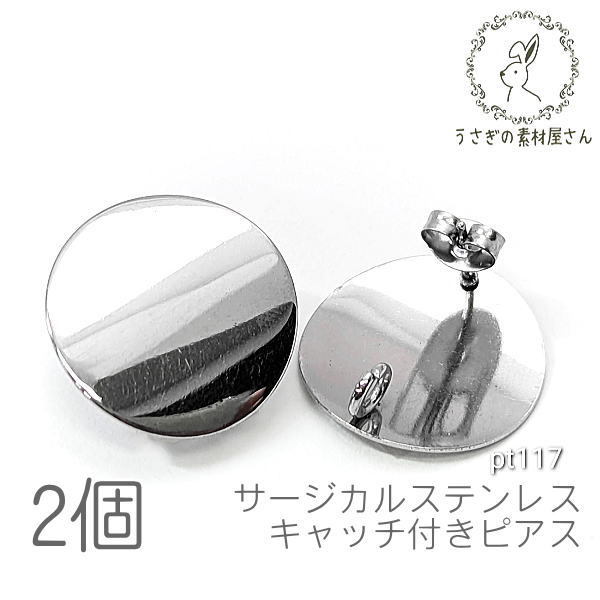ピアス サージカルステンレス キャッチ付き カン付きピアス プレートピアス 金具 特価 ステンレス鋼色 2個