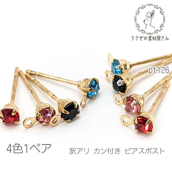 訳アリ ピアス カン付き ガラスストーンピアス ポストのみ 4色1ペア