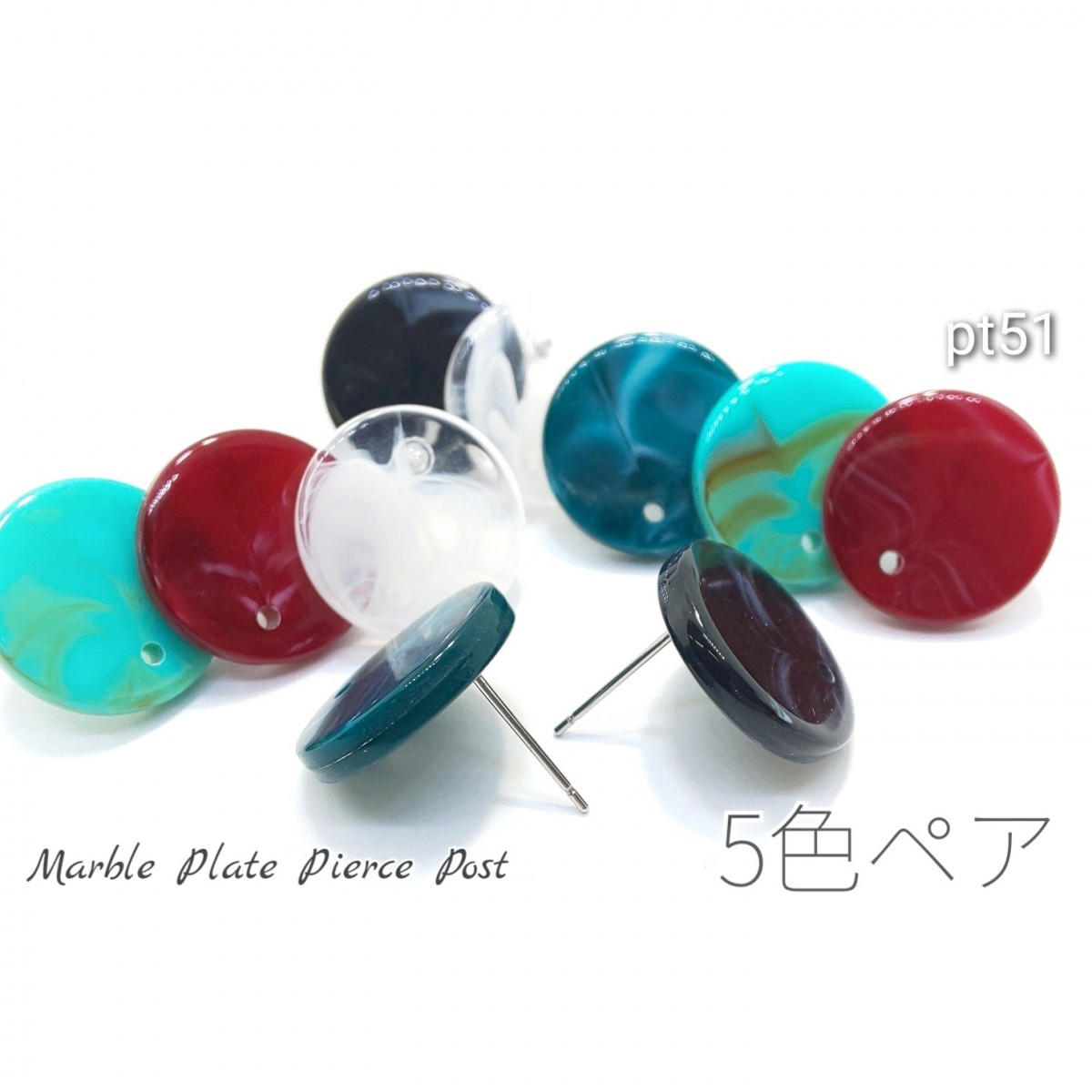10本5色ペア 下部穴あり マーブル サークルプレート ピアスポスト