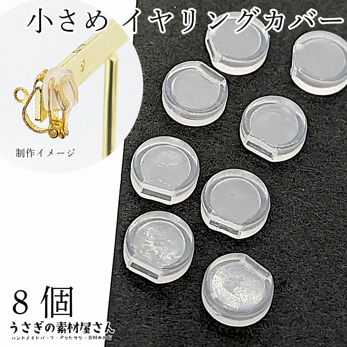 イヤリングカバー サイズ変更 丸タイプ 耳が痛くなりにくい イヤリングクッション 透明 クリア色 プラゴム 8個 ばね式イヤリング用 滑り止め うさぎの素材屋さん