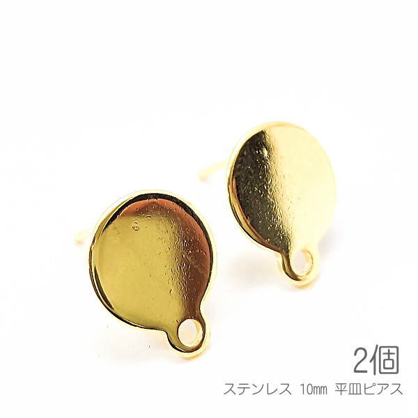 304ステンレス ピアス 10mm 平皿 カン付き ピアス金具 ゴールド色 2個
